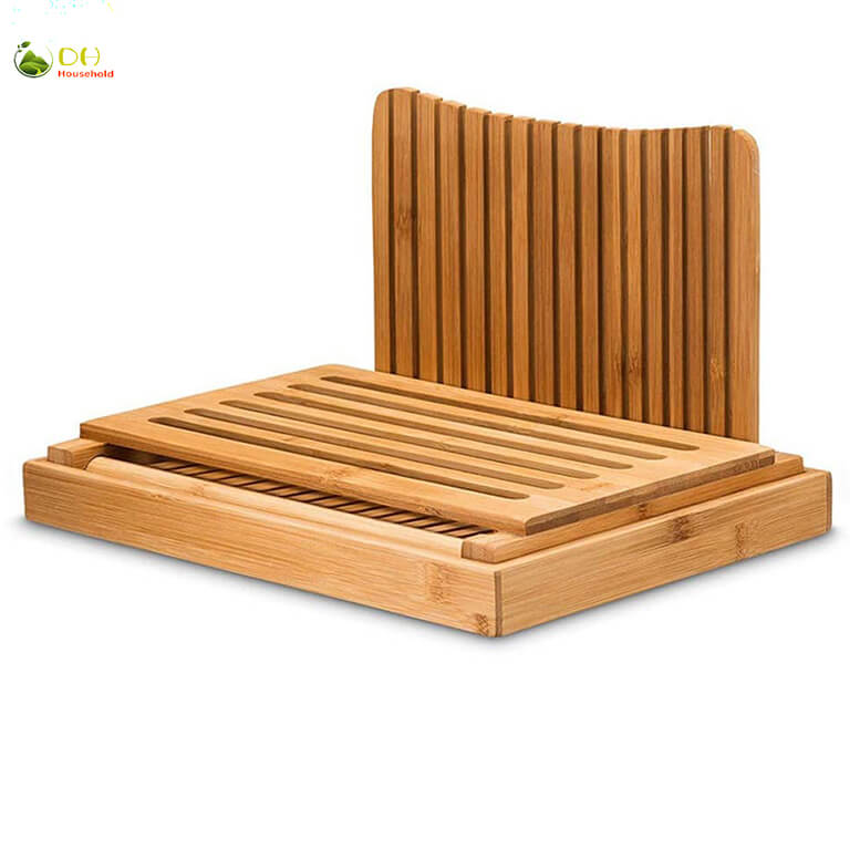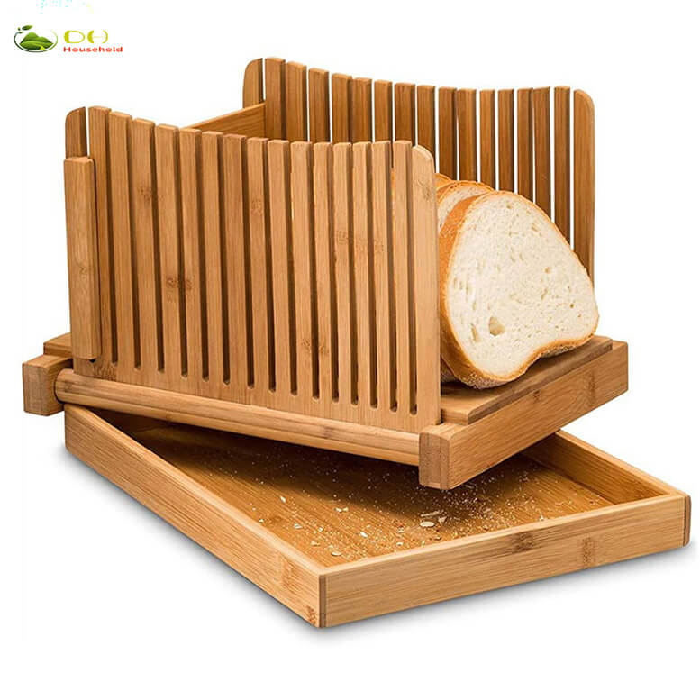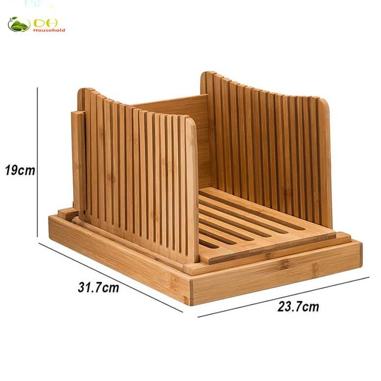 Name and description: | Bamboo Wood Foldable Bread Slicer Compact Bread Slicing Guide with Crumb Catcher Tray for Homemade Bread Thickness Adjustable Donghe DHK01004 |