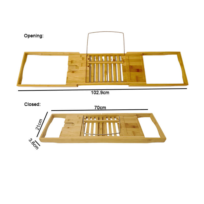 Name and description: | Luxury Bamboo Bath Caddy Tray Expandable for Bathroom Bathtub Organizer Donghe DHB01001B |