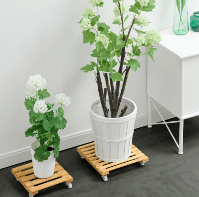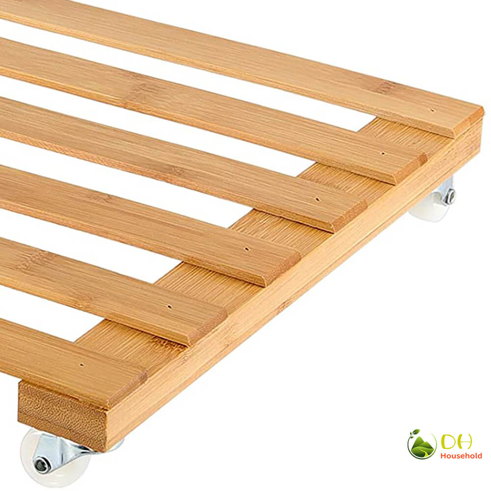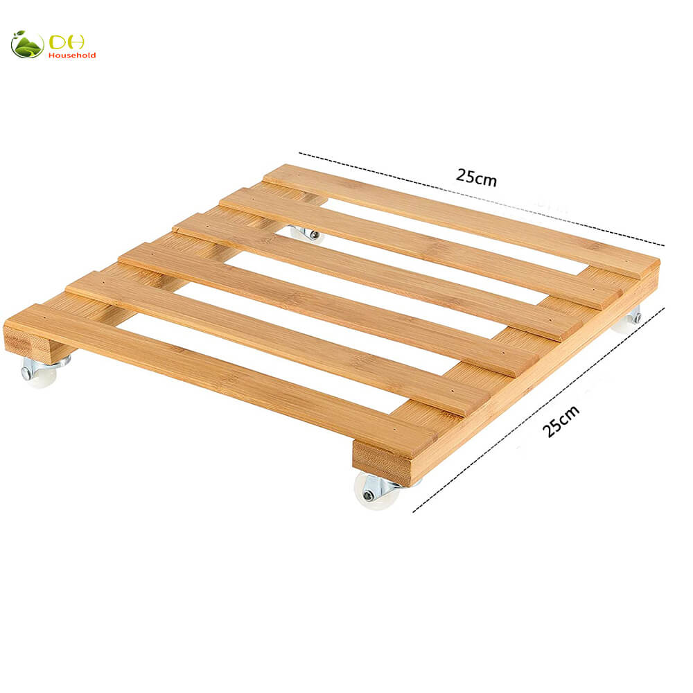 Name and description: | Bamboo Wood Plant Caddy with Wheels Square Plant Stand with Wheels for Indoor Outdoor Garden House Donghe DHH01046 |
