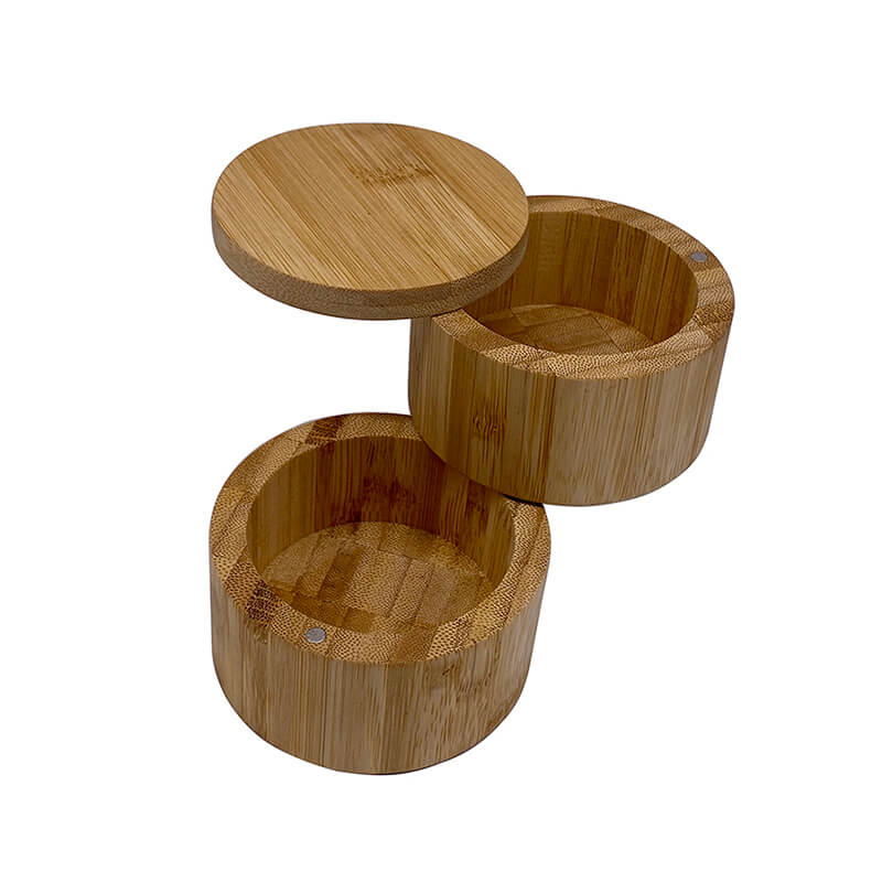 Name and description: | Bamboo Spice Organizer Box for Kitchen 2 Tier Holds Salt Pepper Seasoning Magnetic Swivel Lids Compact Tower Design Donghe DHK236026 |
