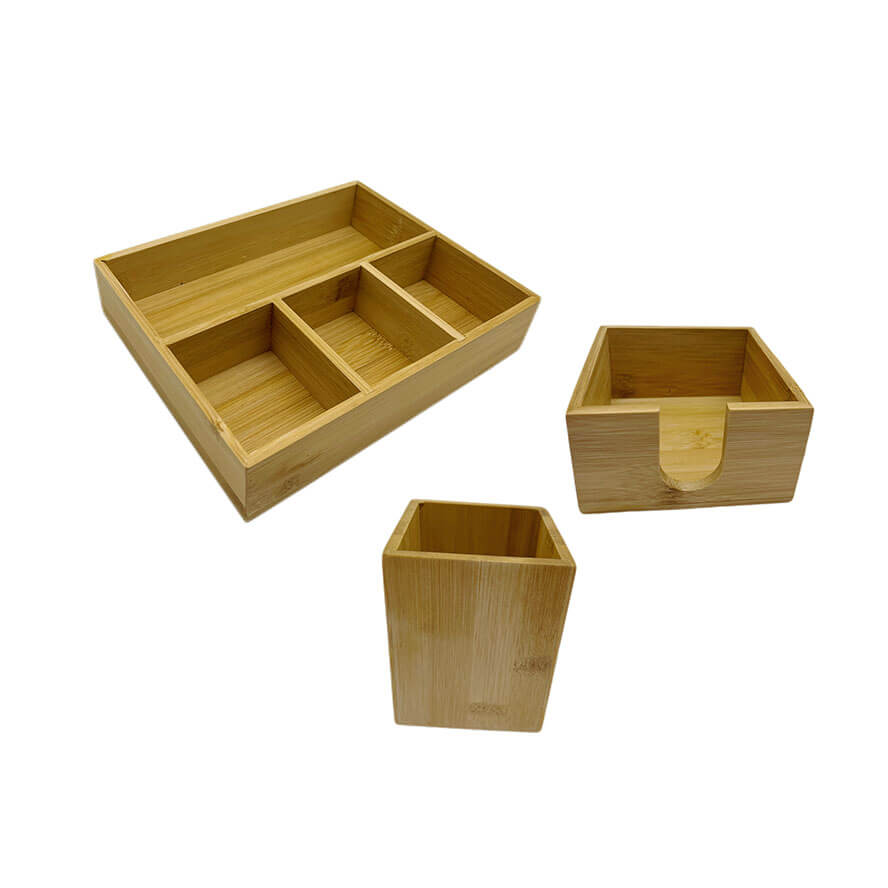 Name and description: | Natural Bamboo Wooden Bamboo Drawer Organizer 3 packs for pens erasers highlighters notes staplers pencils scissors tapes clips Donghe DHO01030 |
