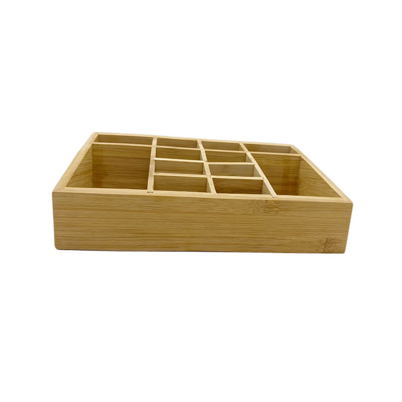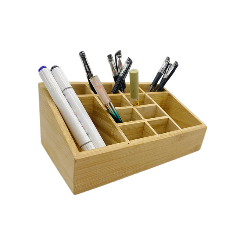 Name and description: | Small Multifunctional Bamboo Organizer | Desk Caddy | Home Office Accessory Tray | School Art Supply Holder | Pen Pencil Brush Compartment | Kitchen Bathroom Countertop Storage Organizer Donhghe DHO24003 |