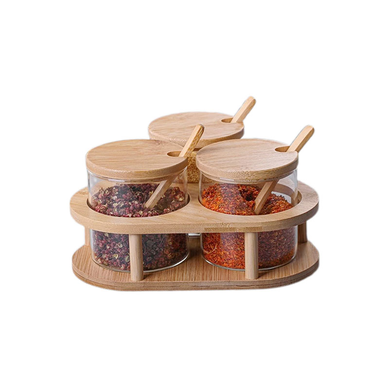 Name and description: | Creative kitchen Glass Seasoning Spices Jar Sets 4-piece with Wooden Lid Spoon and Holder Donghe DHK240154 |