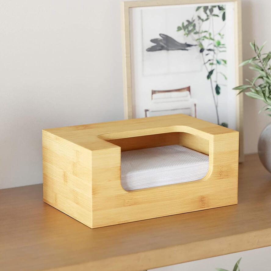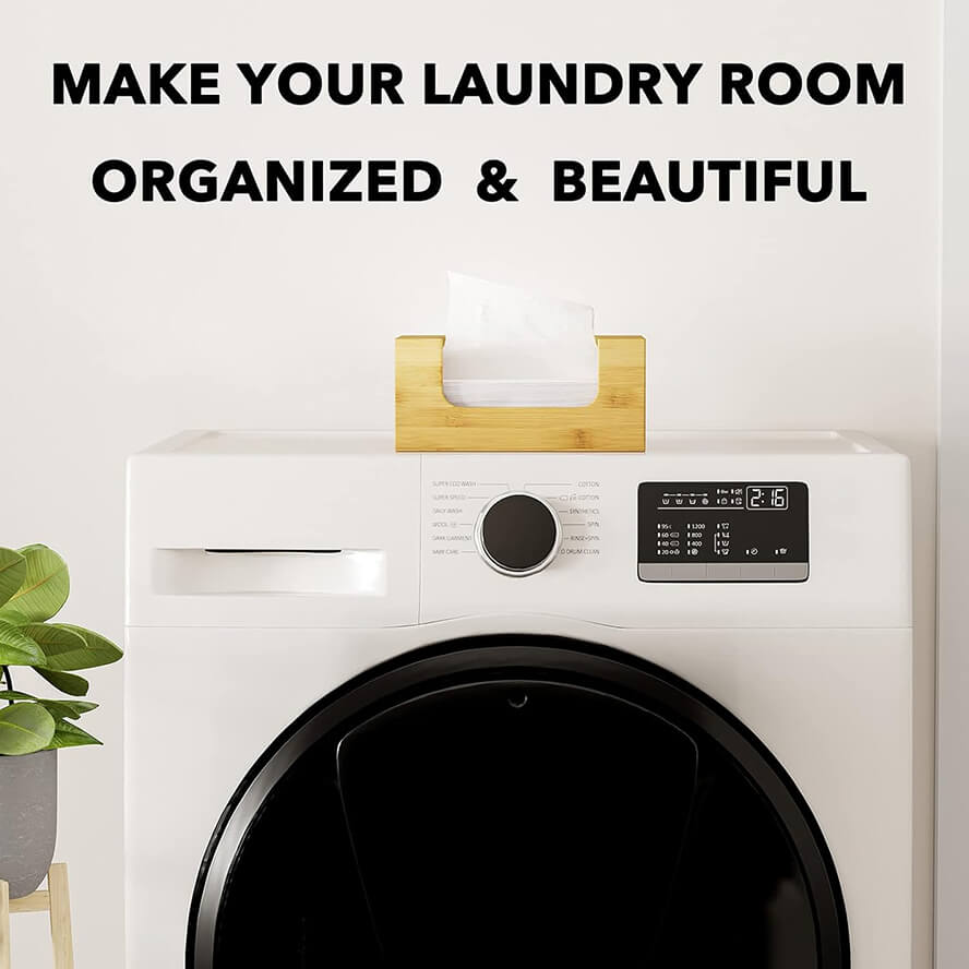 Name and description: | Bamboo Laundry Softener Dryer Sheets Holder with Opening and Labels for Home Laundry Room Farmhouse Decor Donghe DHH240003 |