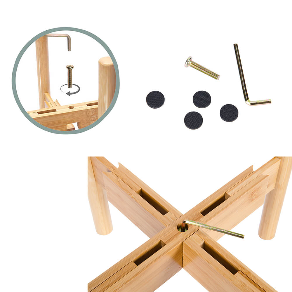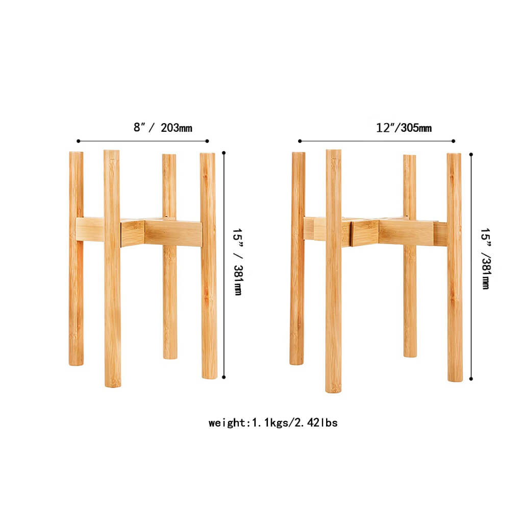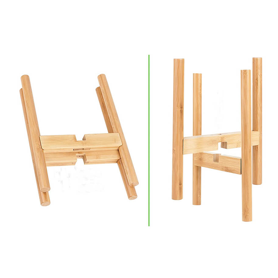 Name and description: | Adjustable Mid Century Modern Indoor Potted Stand 15 inch Height Bamboo Plant Holder for 8 to 12 inch Flower Pot 1 pack Donghe DHH01038 |