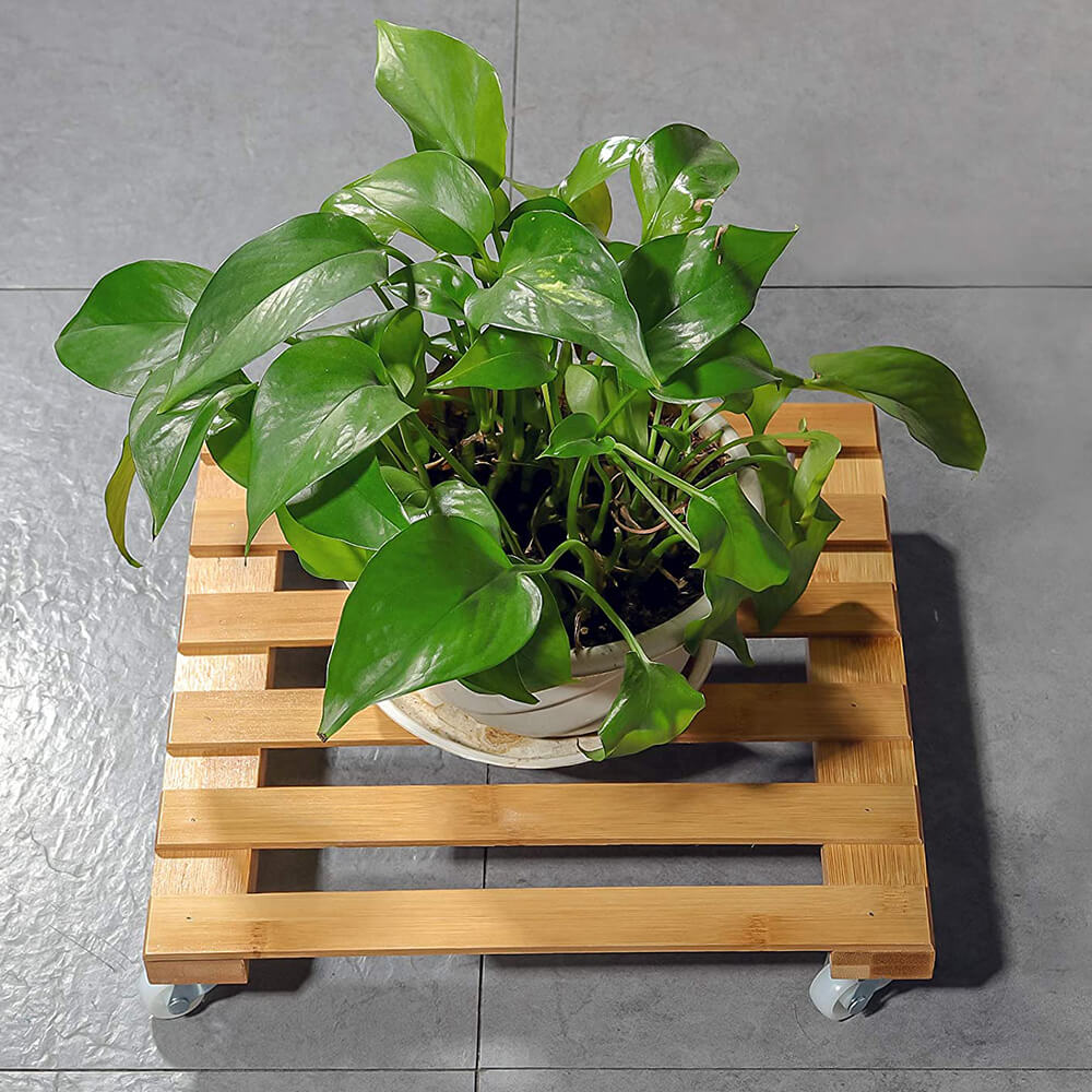 Name and description: | Bamboo Wood Plant Caddy with Wheels Square Plant Stand with Wheels for Indoor Outdoor Garden House Donghe DHH01046 |