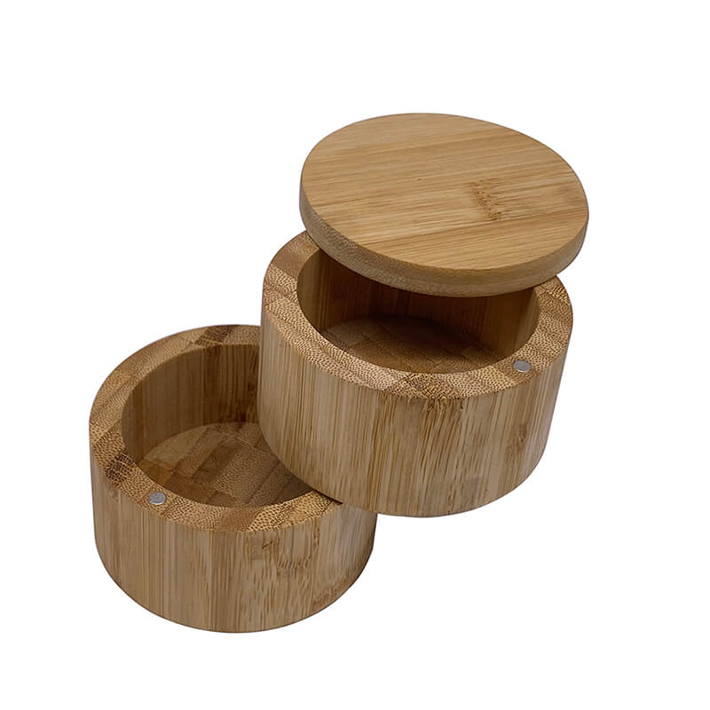 Name and description: | Bamboo Spice Organizer Box for Kitchen 2 Tier Holds Salt Pepper Seasoning Magnetic Swivel Lids Compact Tower Design Donghe DHK236026 |