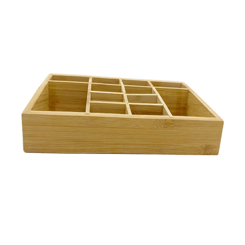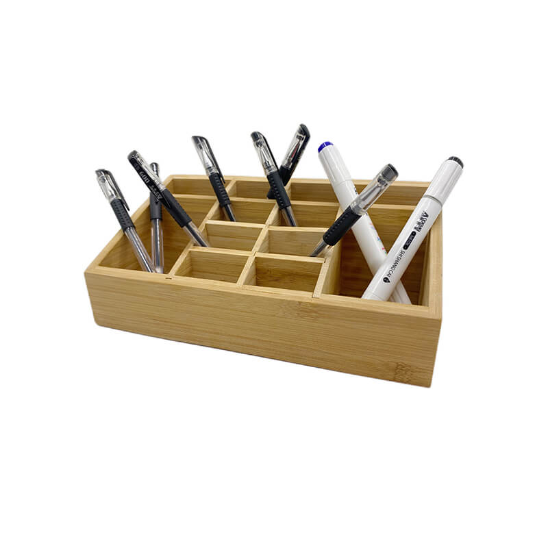 Name and description: | Small Multifunctional Bamboo Organizer | Desk Caddy | Home Office Accessory Tray | School Art Supply Holder | Pen Pencil Brush Compartment | Kitchen Bathroom Countertop Storage Organizer Donhghe DHO24003 |