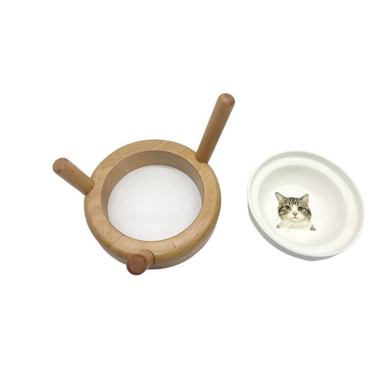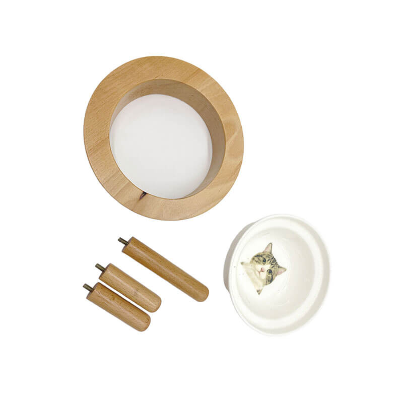 Name and description: | Wooden Pet Table Round with Ceramic bowl for Cats and Dogs with adjustable legs Donhe DHH01119 |